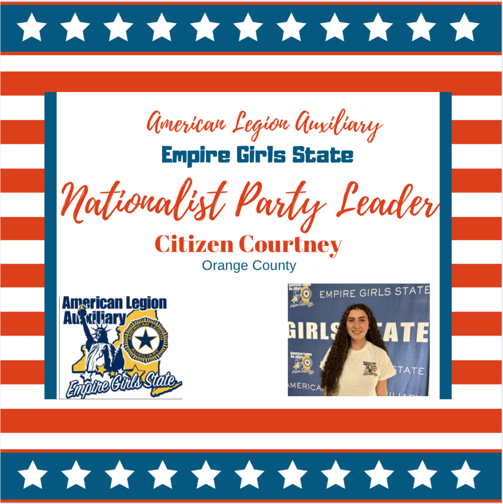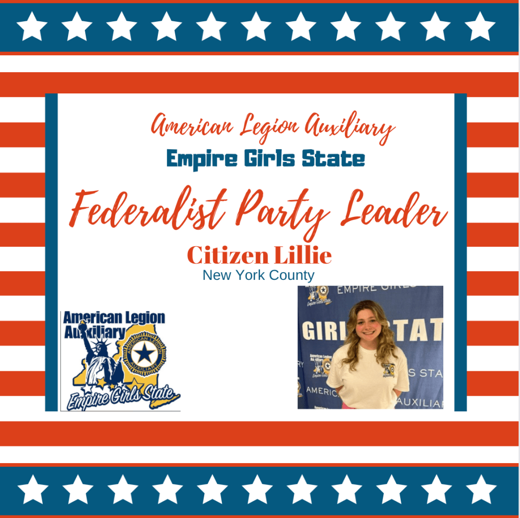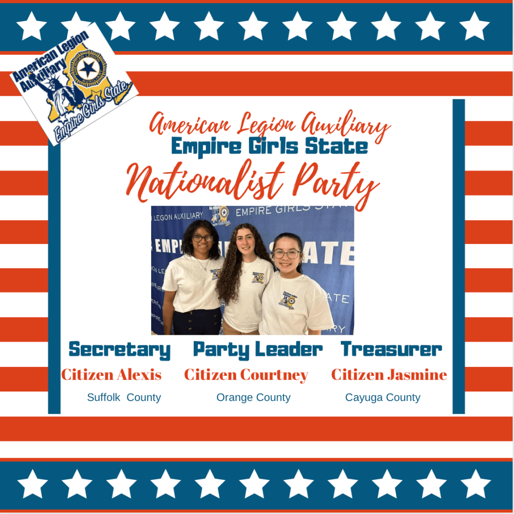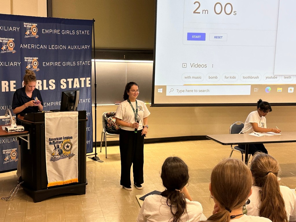 Rankin County started today’s session by leading the ALA Empire Girls State general session in a flag raising ceremony. One important aspect of ALA EGS is learning about Americanism and respect for the American flag. ALA Department of New York Americanism Chairman Lucille Mozzillo will be helping our citizens create their county’s daily flag raising and lowering ceremonies. She also organized today’s POW/MIA ceremony.