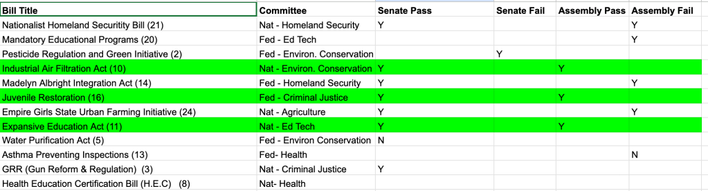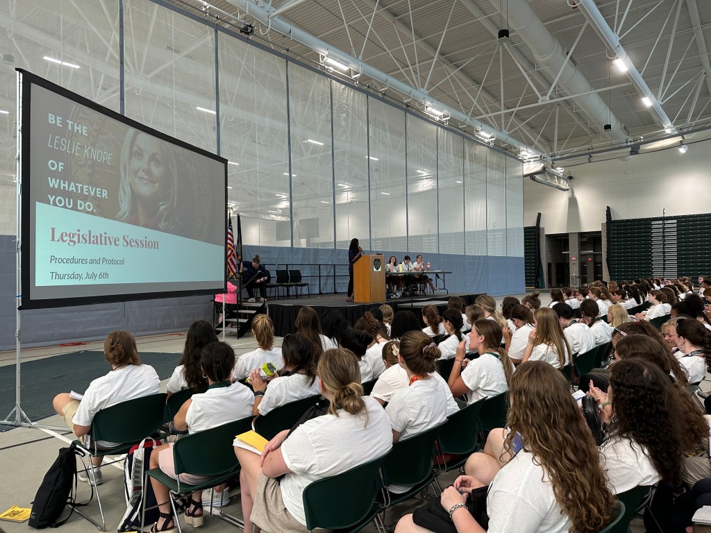 After the announcement of the ALA Empire Girls State Governor, Lt. Governor, Comptroller and Attorney General last night, they got right to work reading all of the bills the ALA EGS citizens wrote in their committees this week. Today during legislative session, the Political Instructors Jaime and Xamayla explained how the bills will be brought to the floor and voted on. The line up for the bills was decided on by the ALA EGS Governor, Lt. Governor, Comptroller and Attorney General. Each committee chairman will read their bill to the session, and time is given for citizens to ask questions and discuss the bill before it is brought to a vote from the Senate and General Assembly. All of the bills that are passed will be given to the ALA EGS governor to sign or veto before the State of the State Friday. A total of 3 bills have passed and will go to the Governor for her signature.
