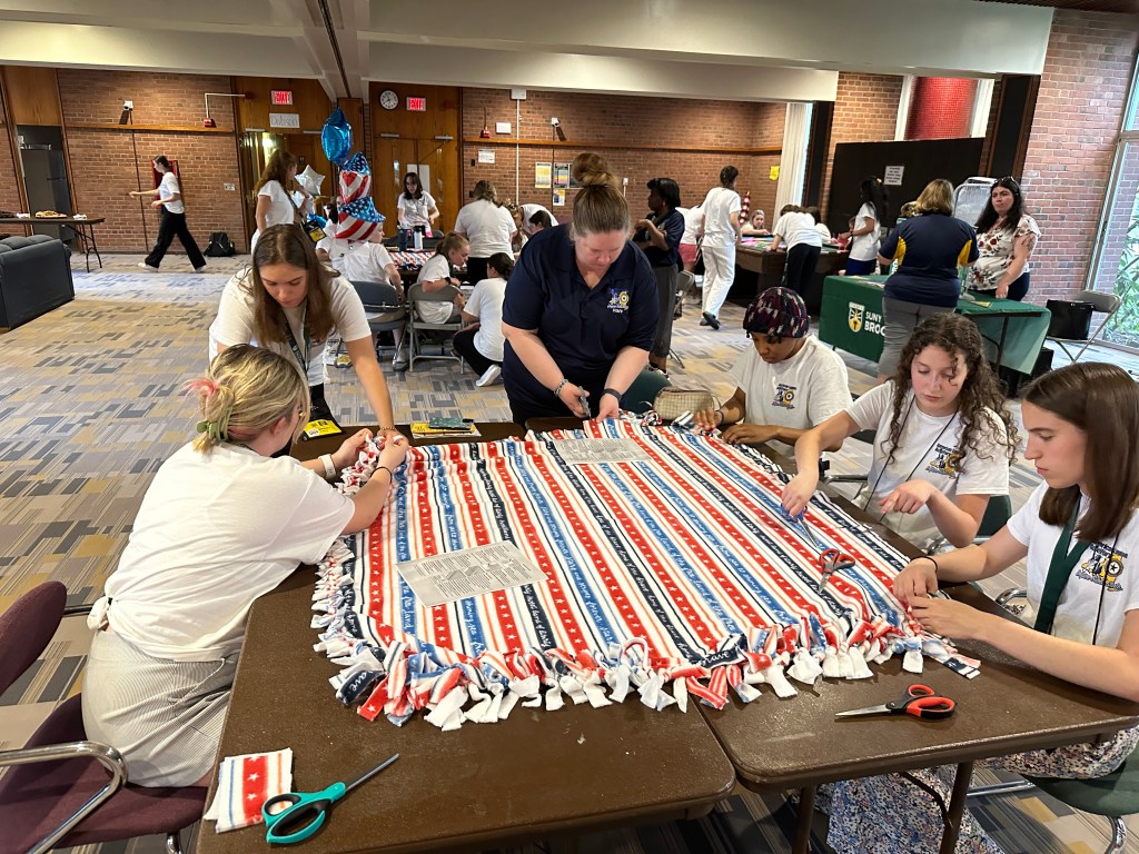 Tonight ALA EGS citizens participated in a service project in which they made cards and fleece lap blankets for the veterans on Honor Flight. They also had the opportunity to mingle with each other, staff members, and representatives from Honor Flight, ROTC, and Brockport Admissions to gather information from them. It was an event that was informative and enjoyed by all.